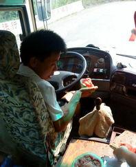 车继续前行,司机又拿起一块西瓜,继续他的“瓜宴”。我看着他,心里充满了好奇。于是,我鼓起勇气,走到他身边,轻声问道:“师傅,您为什么在开车的时候吃瓜呢?”
